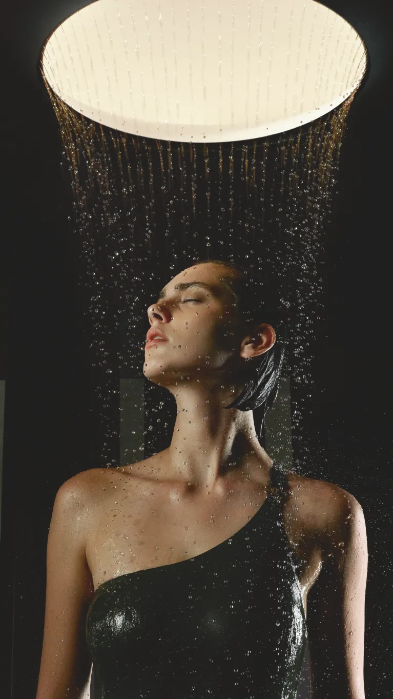 Mit ihren großen, besonders weichen Tropfen, die scheinbar drucklos und allein durch Schwerkraft nach unten fallen, bringt die Strahlart TEMPEST das Naturerlebnis eines stürmischen Regenschauers ins Bad. Die Strahlart folgt keiner Logik, sondern der Natur des Wassers. Ein Gewitterregen, der aus allen Richtungen kommt, Klarheit schafft und so gleichzeitig für Entspannung und Erfrischung sorgt.