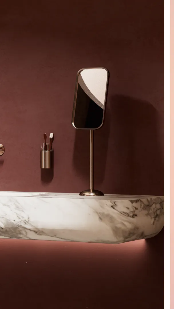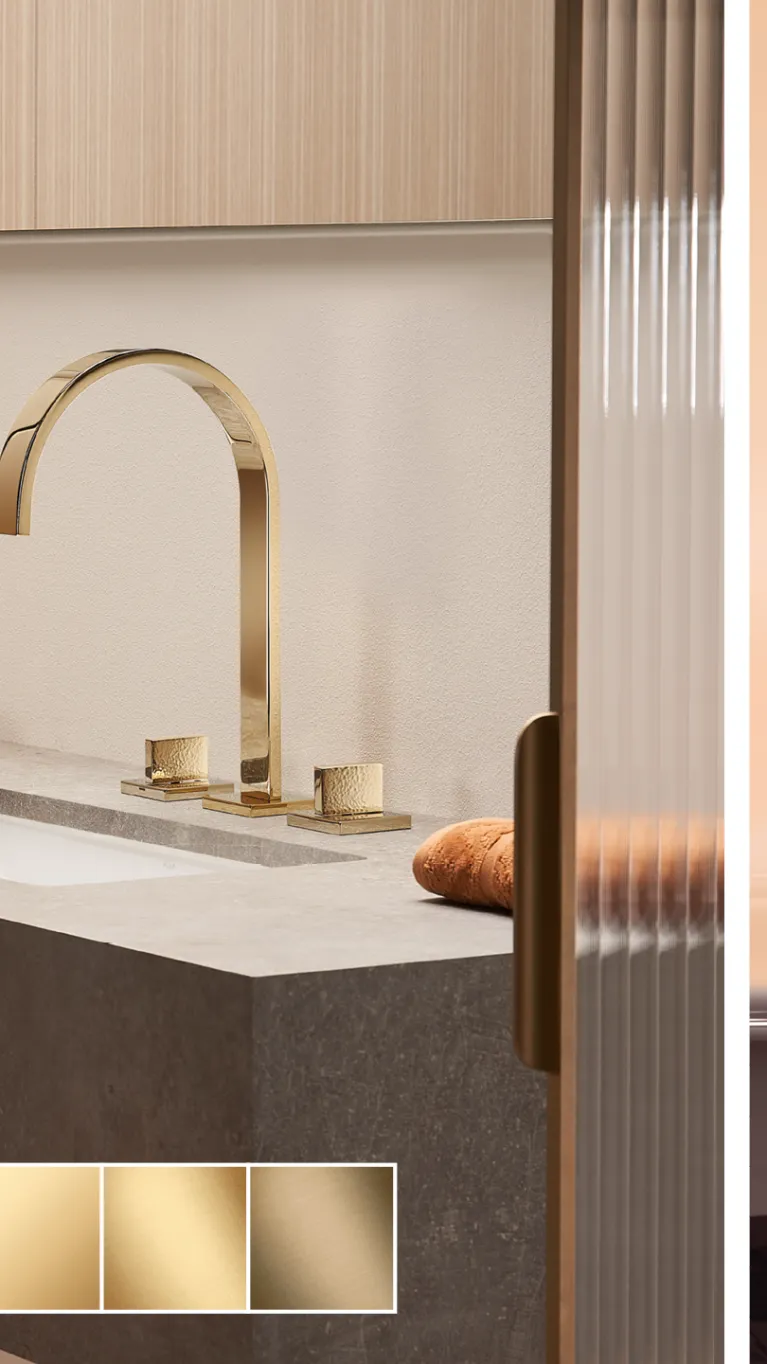 Fasziniert mit sanftem, goldenem Schimmer, der jedes Interieur veredelt. Warm, luxuriös und außergewöhnlich langlebig – ein Highlight für stilvolle Badezimmer.