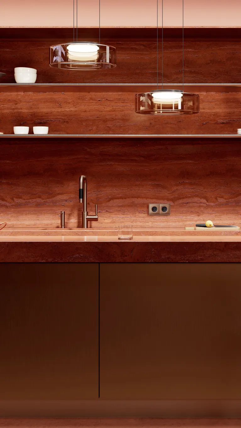 Las superficies de metal auténtico cepillado aportan a los interiores profundidad, calidez y una especial sensación de calidad. El Bronce cepillado introduce un acento sutil y preciso y se integra armoniosamente en distintas atmósferas de luz y paletas de materiales. Las líneas claras y el acabado ajustado con exactitud crean una imagen de conjunto serena que conecta los espacios y resulta coherente hasta en el último detalle.
