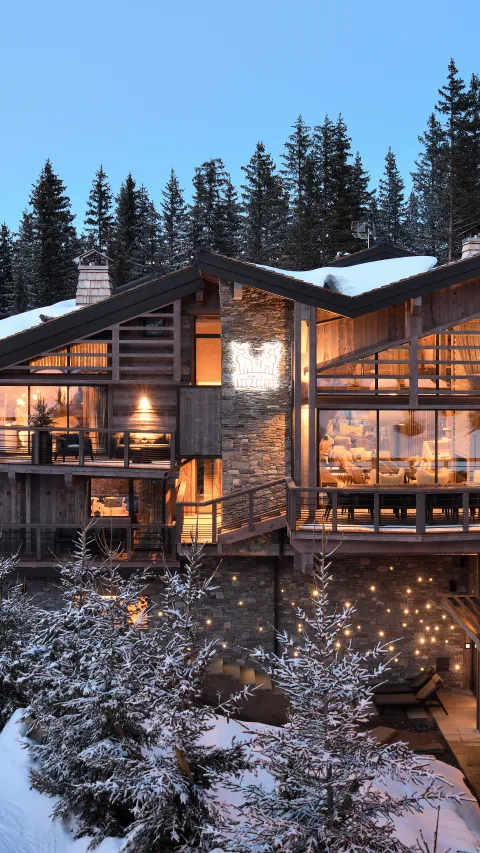 Modern Alpine architecture: “Les Deux Cerfs” – meaning “The Two Deer” – is in Courchevel, France, on the edge of a ski slope. For her reinterpretation of the typical mountain chalet, architect Flávia Ducros-Bourdens completely rebuilt the original building. Only the outer walls were retained, and the roof was raised to create a more open spatial structure. The result, covering 800m², draws on traditional Alpine construction methods and complements them with contemporary accents, such as clearly structured privacy screens, high glass fronts, and a natural stone façade with star-like points of light. The rustic Alpine architecture is thus transformed into modernity without losing any of its charm and character.