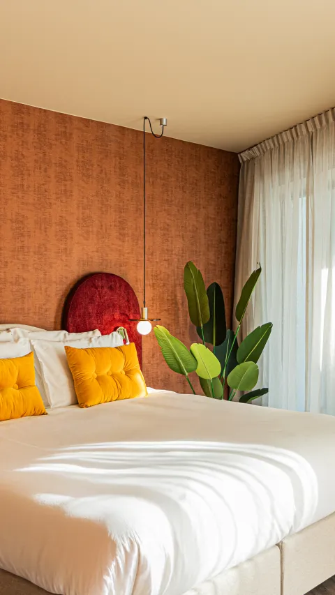 Living local culture: The overall concept was developed by “The Brand Guys” and realised in detail by design studio BLCN Design. The close connection to local culture is a special feature: the hotel worked with local artists for the interior. This can be seen in the individually designed suites – such as the “Herr Seele Studio” with hand-painted murals by the cartoonist and artist of the same name. The “Red Light Suite”, on the other hand, is a tongue-in-cheek reminiscence of the former Hazegras red light district in Ostend. Another highlight: The “Record Suite”, with its own recording studio, electric guitar, and keyboard, invites guests to spontaneous jam sessions. The regular rooms are also stylishly designed and rich in detail. Shades of red and pink meet vibrant yellow. Curved fabric panels behind the beds create striking accents.